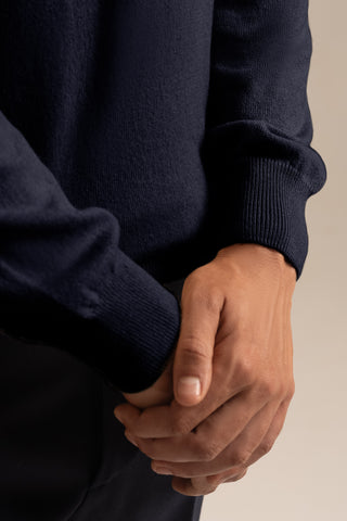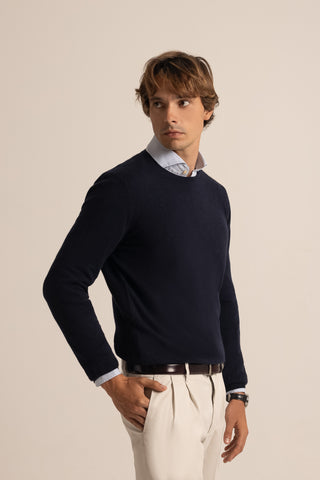 Crew Neck Sweater, Navy Blue, size M. Model 1.89m