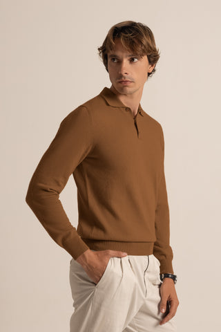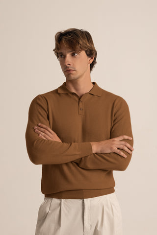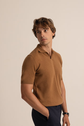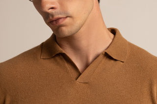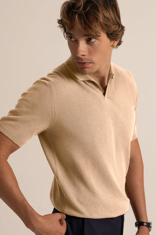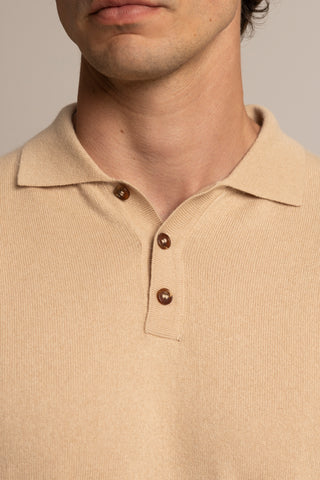 Short Sleeve Polo, Natural Vicuna, size M. Model 1.89m