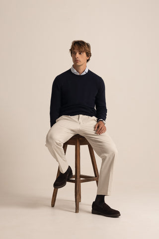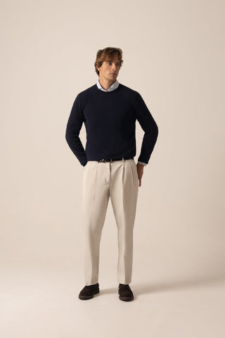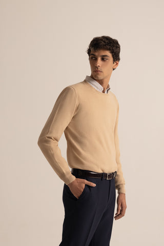 Crew Neck Sweater, Natural Vicuna, size M. Model 1.91m