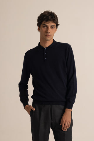 Long Sleeve Polo, Navy Blue, size M. Model 1.91m